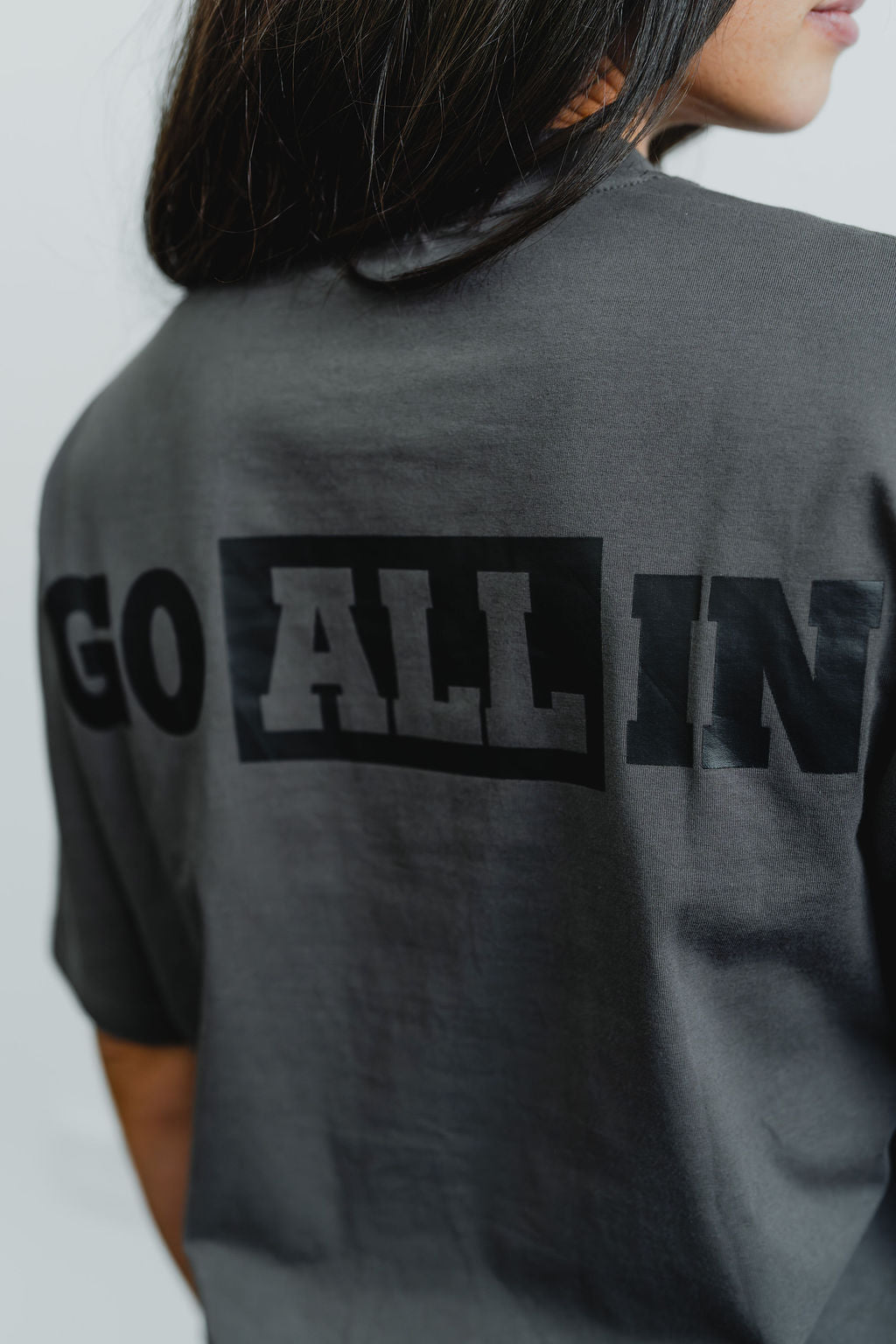 This is our womens box tee cut - relaxed, boxy fit, drop shoulder, mid length (not as short as a crop, covers mid section, but not as long as a regular tee)